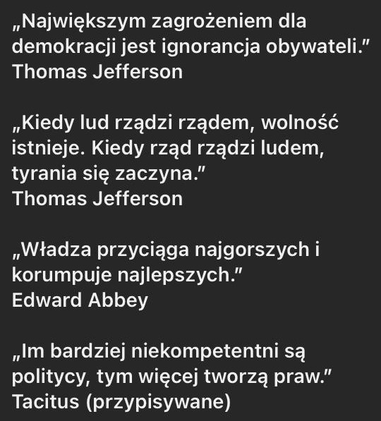 Kiedy lud rządzi rządem wolność istnieje kiedy rząd rządzi ludem tyrania się zaczyna